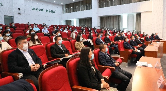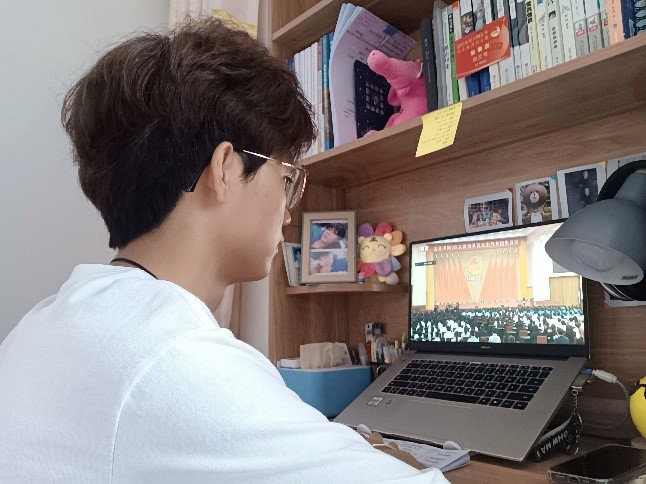 校党委副书记宋涛和今年会官网全体团干部、团员青年代表在图书馆四楼报告厅集中收看。全校各级团组织、学生会、团干部、团员青年同步在线观看直播,迅速掀起学习热潮。