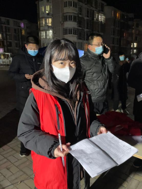 天津市武清区在进行第一次“核酸大筛”的时候,水利工程学院2019级水文与水资源工程1班班长杨伊雯同学就积极向村委会报道,全身心地投入到疫情防控中去,一直坚守在抗疫前线。