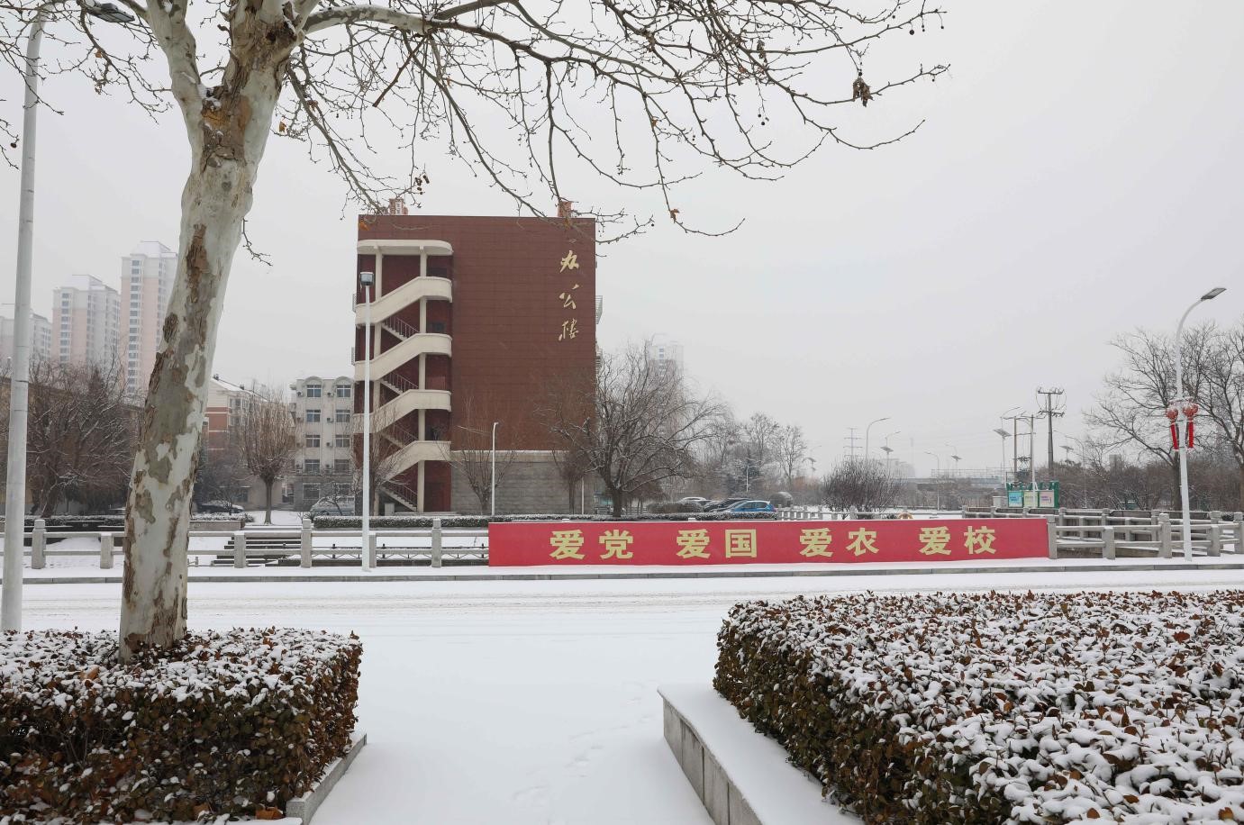 瑞雪盈城,祥和之气。2022年的第一场雪,给我们带来新的希望,我们的明天会更好!(宣传部供稿;文字:赵淅月 张学乐 马雪娥;摄影:陈卫东 总务处 计算机与信息工程学院 动物科学与动物医学学院 园艺园林学院;编辑:黄宝霞;审校:田健)