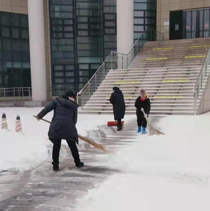 天农师生在校园里清理积雪