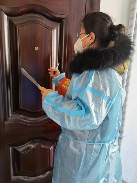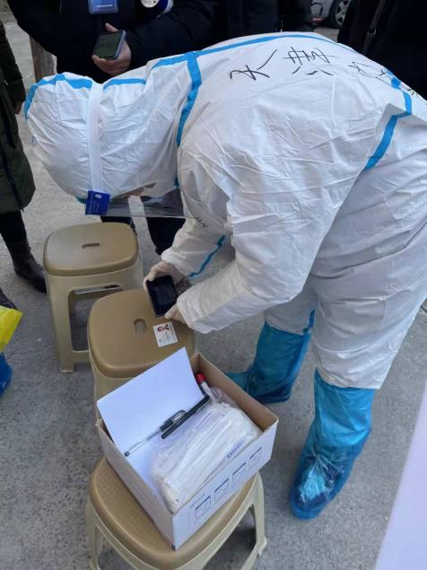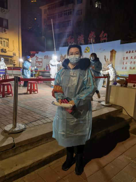 1月15日早晨5点,她安置好年幼的孩子,就参加到第三次筛查工作准备中。寒冬的早上气温只有零下四五度,她仍然耐心、细致的引导社区居民有序进入核酸检测区,并对不方便下楼的居民进行上门登记。中午11时工作结束后,她的双脚已经冻僵、双手也冻得通红。