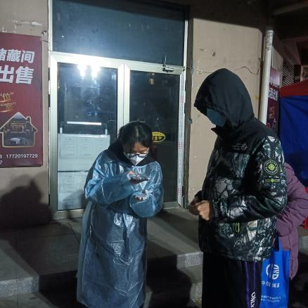 从下午3点开始的二筛工作一直到晚上11点才结束,她用手机帮大家录入信息。小区的外国人比较多,因此需要手动录入他们的护照号。“那天风还很大,我刚好站在风口,又是晚上,手和脚都冻麻了,人也要麻了。但是很多居民为我们送来热水瓶让我们捂手,邻近的商户为我们一直敞开大门让我们在里面休整,感觉心里暖暖的。”她笑着说到。