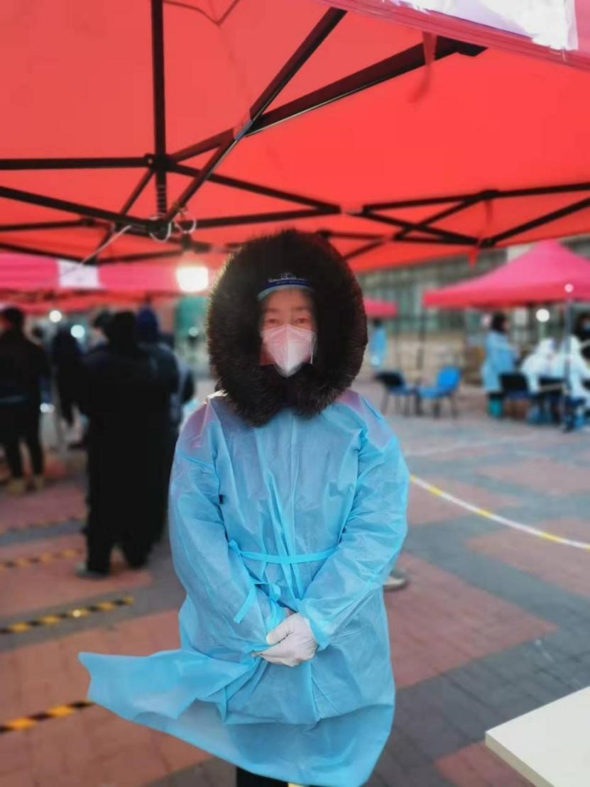 根据任务安排,王瑞早上4:00起床,简单洗漱后便投入到第三轮核酸筛查工作中。由于有前两轮核酸检测志愿者的工作经验,他根据实际情况合理安排居民排队路线,协助维持秩序。羡晨早上5:00到社区报到,负责身份证件录入拍照工作,为了不耽误本组居民的检测进度,不浪费医疗服装资源,她连一口水都没有喝,也没上过卫生间,一直坚持到她所在的核酸检测点的任务全部完成。杨黎芳6:30到和平区西宁道社区报道,主要负责防疫物资调配工作,根据工作需要,耐心和居民沟通解决各种问题,比如:核酸检测期间小区只进不出,外出上班人员需要单位出具的证明,安排志愿者将外卖送到居家隔离人员家门口等等。