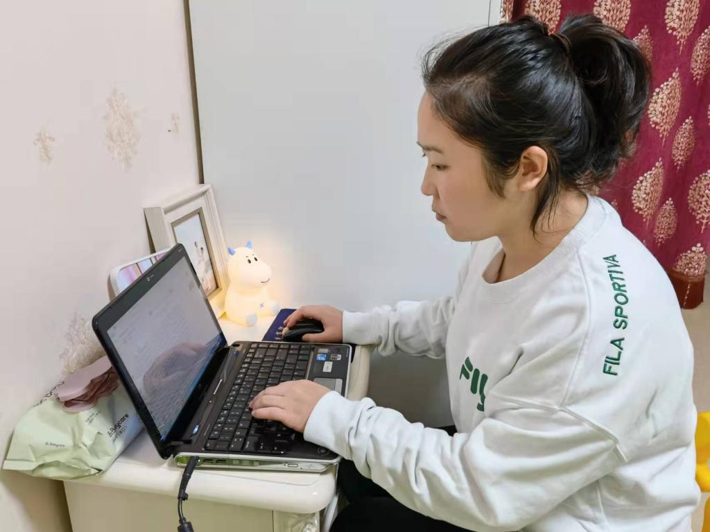 人文学院辅导员陶鑫馨老师是个尚在哺乳期孩子的妈妈,在天津硬刚奥密克戎的关键时刻,她更是心系学生安危的一名共产党员。她以腾讯会议的形式,组织各班班委科学管理、共同抗疫。通过班委工作群、电话和网络会议等多种形式及时对学生情况进行摸排,在两天内完成了所有学生的信息统计。细心的嘱托,温暖的问候……她将老师对学生的关心与惦念传递给了一个又一个天农学子。