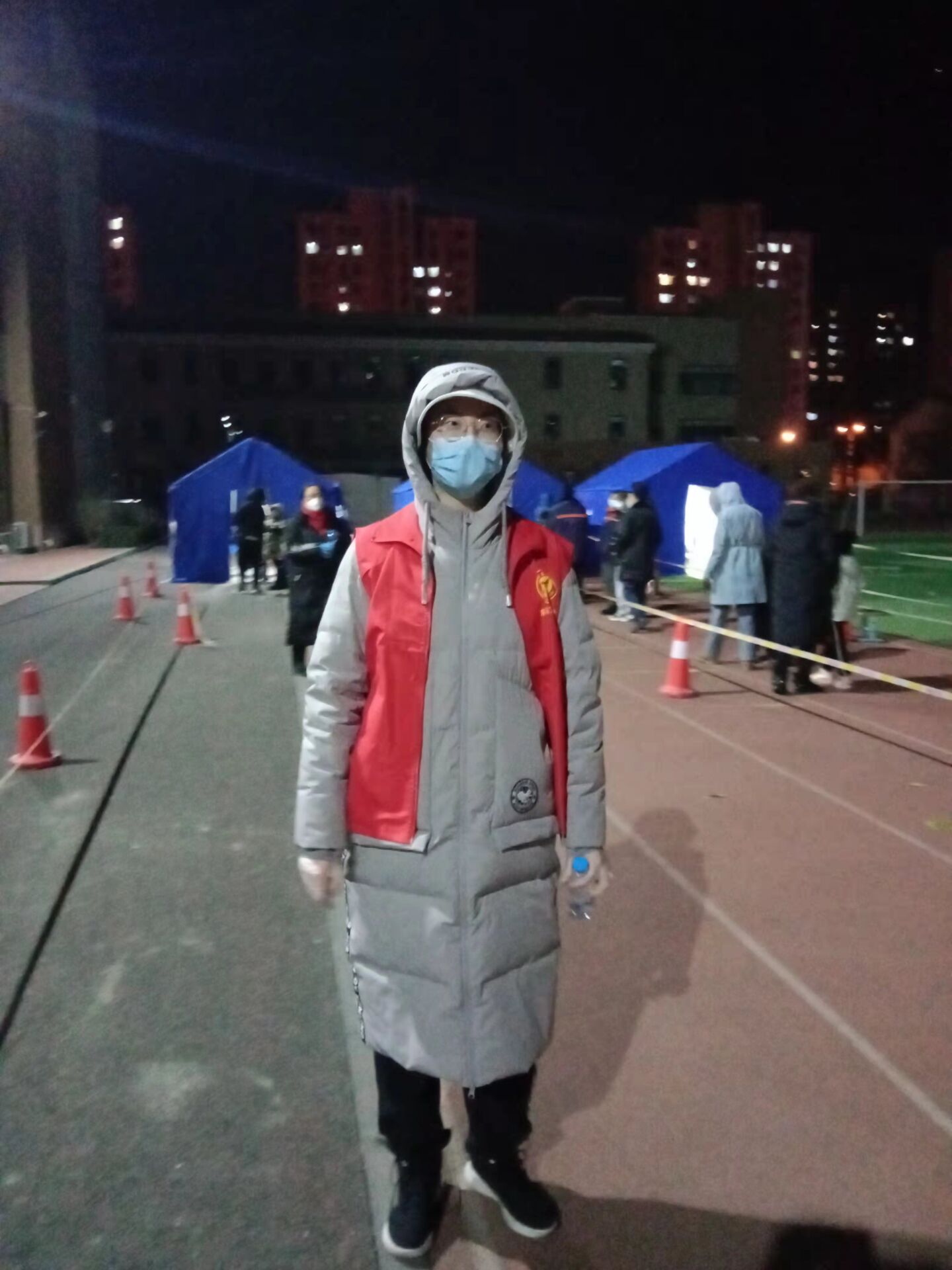 1月8日清晨,他主动找到村委领导,请战疫情防控。仅在几个小时后,他就全副武装的站在疫情防控志愿者的队伍当中开始工作。8日晚,正营村连夜开展核酸筛查,为维护筛查秩序,他一夜步行三十余里路,不叫苦、不喊累,坚守岗位彻夜未退,直至第二天中午才轮换休息。清晨到达,凌晨下岗,是他每天的日常,防护服里裹着迷彩绿,彻骨寒冬不挡为民情。