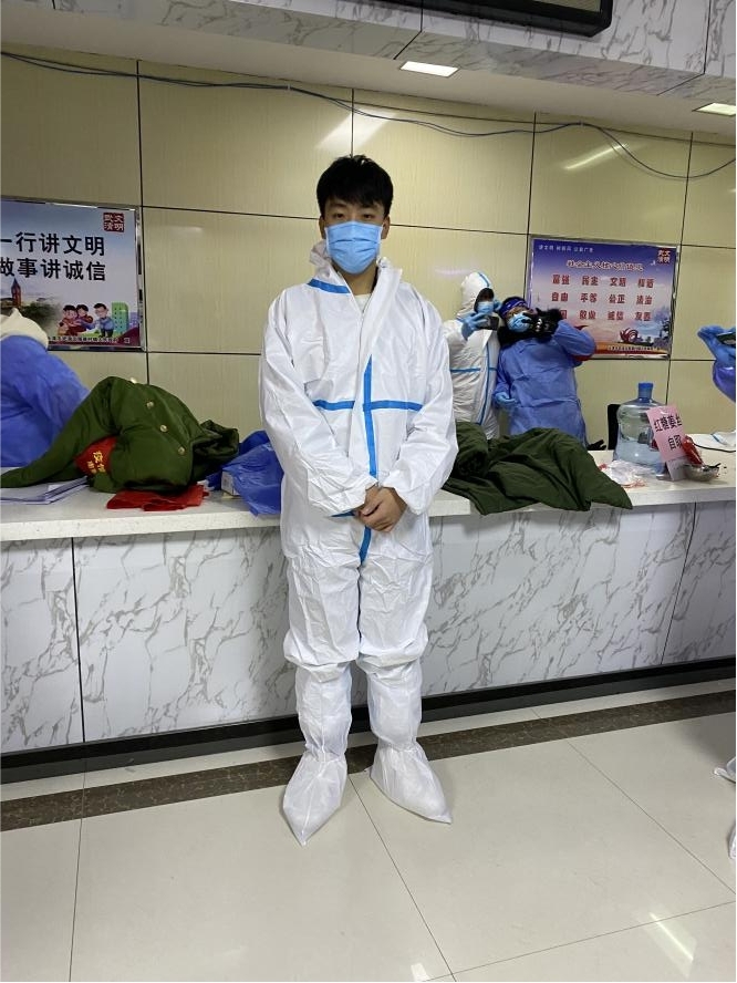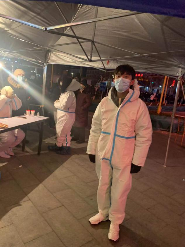 “能够成为一名防疫志愿者,为家乡的防疫工作尽微薄之力,感到无比荣幸,愿疫情早日结束,山河无恙,人间皆安!致敬每一位抗疫者!天津加油!”