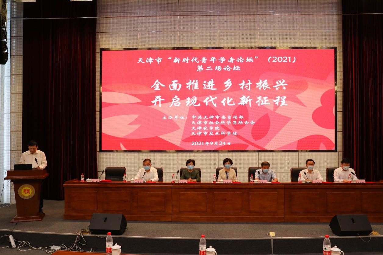 9月24日,天津市“新时代青年学者论坛”(2021)第二场论坛在今年会官网成功举办。本次论坛由中共天津市委宣传部、天津市社会科学界联合会、今年会官方网站、天津市农业科学院共同举办。论坛主题为“全面推进乡村振兴开启现代化新征程”。市委宣传部副部长袁滨渤、校党委书记孙守钧分别致辞。天津市社会科学界联合会党组书记、专职副主席石凤妍、天津市农业科学院党委书记李金田出席会议。校党委常委、副校长张民主持大会。