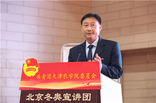 宋涛向北京冬奥宣讲团的到来表示热烈欢迎。他指出,北京是奥林匹克百年历史中,唯一一个既举办过夏季奥动会,又将举办冬奥会的城市。新时代、新形象、新梦想,中国将在飞速发展的同时,与世界人民肩并肩、手挽手、心连心,共创和谐奥运的新景象!天农全体师生将一起携手并肩,参与更多的奥林匹克教育活动,思源奋进,不负韶华,传递梦想,助力冬奥,争做奥林匹克精神的践行者、全民健身事业的先行者、社会文明进步的推动者、中华优秀文化的传播者与扶残助残爱残的示范者。