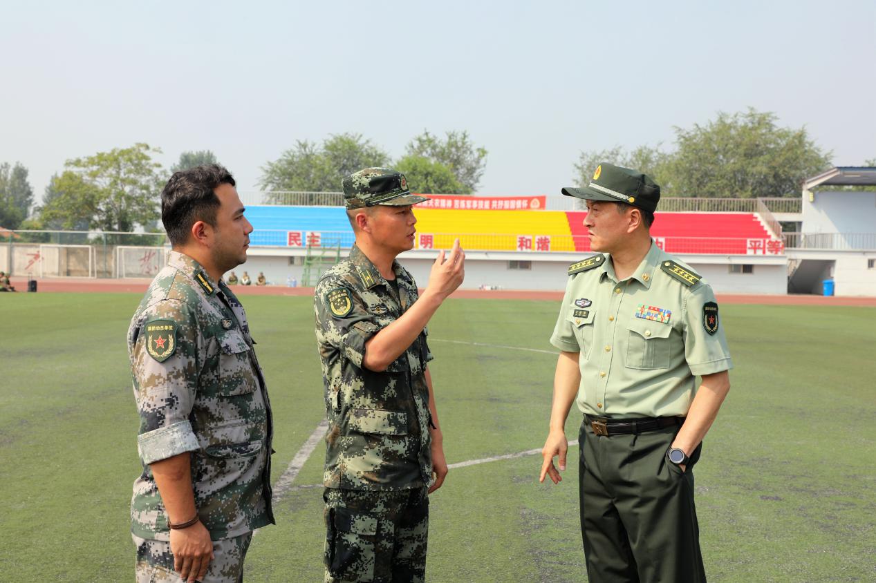 9月10日上午,天津警备区学生军训工作办公室主任辛维刚大校、市教委体美劳处齐双一来今年会官网指导检查2020级学生军训工作。校党委副书记宋涛、承训部队军事主官夏志钰陪同检查。