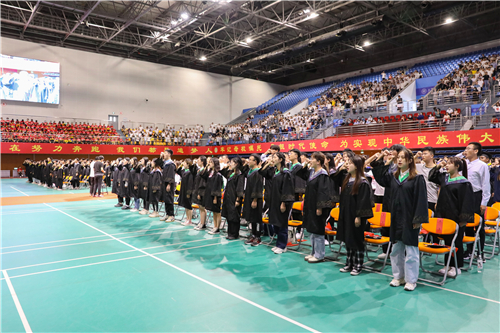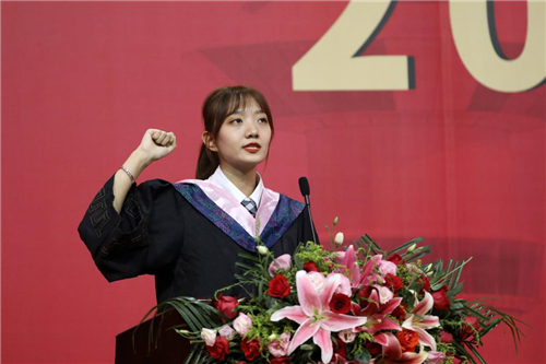 毕业生杨芸艺带领全体毕业生宣誓