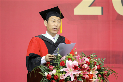 园艺园林学院李树和教授代表全体教师发言,他寄语毕业生牢记校训,树立奉献精神,服务“三农”,助力乡村振兴。
