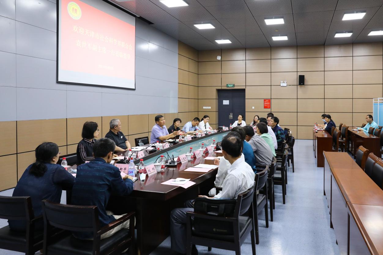 袁世军表示,市社科联是天津市社科工作者之家,深入一线开展调研,是发挥社科联桥梁纽带作用的重要体现,在此过程中,希望能够广泛听取社科工作者的意见、建议。他介绍了市社科联近期的主要工作,重点介绍了第十七届天津市社会科学优秀成果评奖及天津市“新时代青年学者论坛”的相关工作。围绕项目申报、学术年会、成果奖励等内容,袁世军对学校人文社科的下一步发展提出了建议:一是聚方向,围绕学校特色、学科布局进一步凝练方向;二是造明星,加快推进学术带头人及人才梯队建设;三是打品牌,通过开展特色活动,树立品牌,提高知名度。