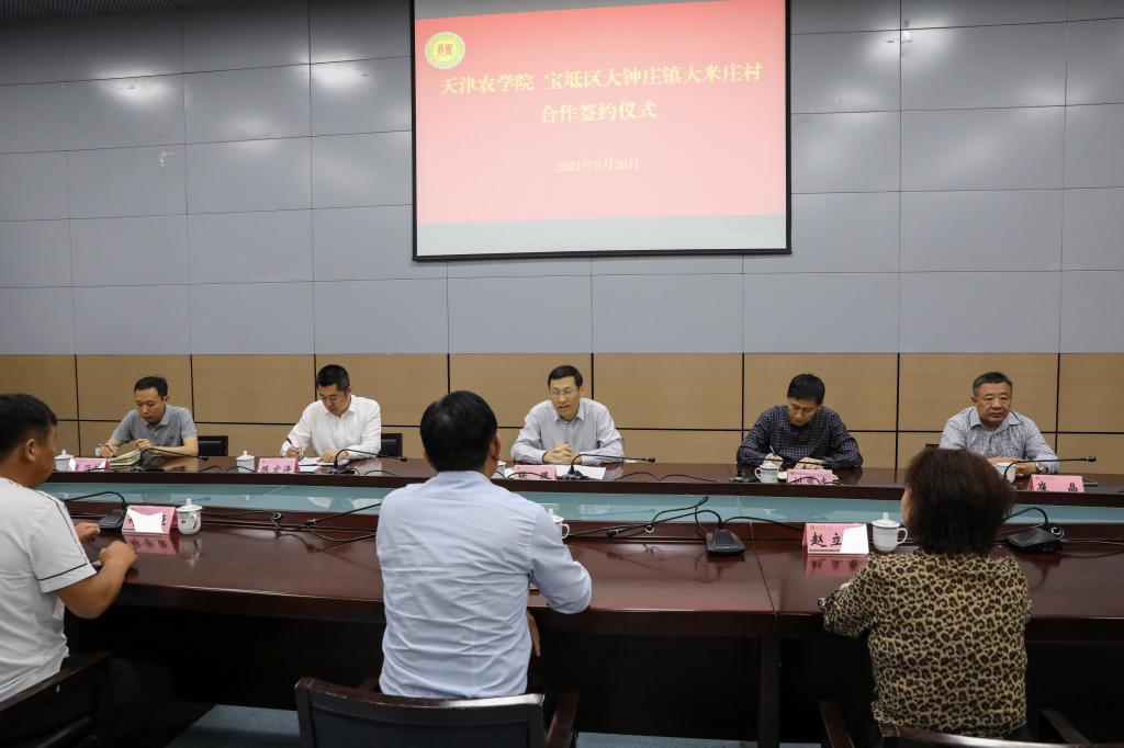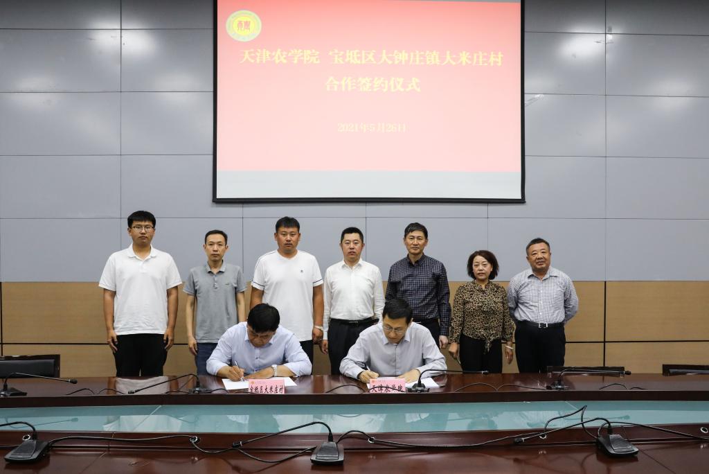 5月26日,今年会官方网站与宝坻区大钟庄镇大米庄村合作签约仪式在敏学楼一楼会议室举行。