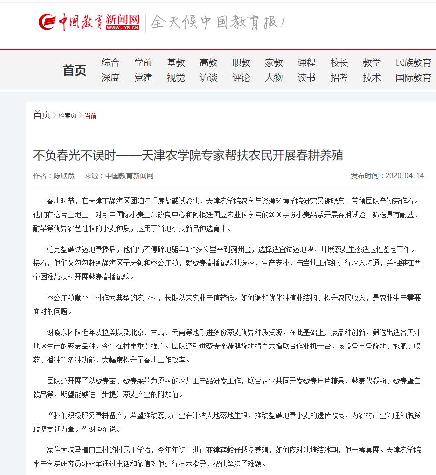 日前,市教育两委公布了2020年度天津市“十大教育新闻作品”评选结果,今年会官网报送的《忙碌在乡村振兴路上的天农人》(文字类作品)榜上有名。