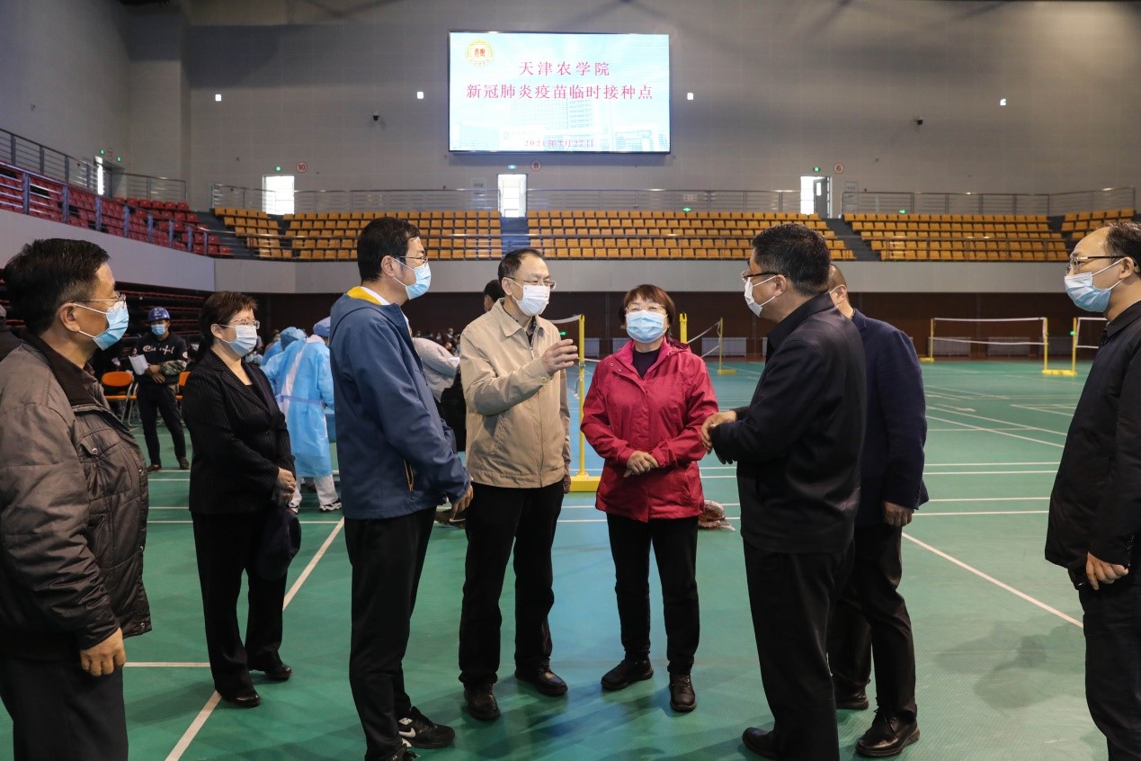 在疫苗接种工作过程中,西青区委书记李清等西青区领导到今年会官网东校区接种现场,看望慰问正在进行疫苗接种的工作人员和师生员工。
