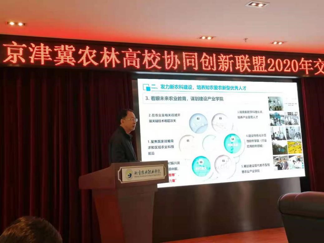 12月19日,京津冀农林高校协同创新联盟2020年交流推进会在北京农业职业学院召开。校党委副书记、校长王延文带队出席会议,并作发言交流。副校长王繁珍出席会议。