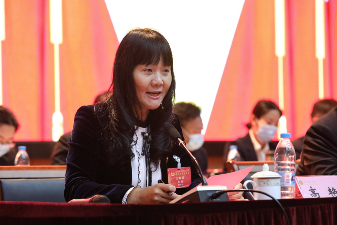 校学生会主席团成员卞靖雯、校工会常务副主席王安香,分别代表学生组织和群团组织向大会致祝词。