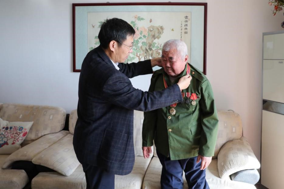 10月21日,副校长张民代表学校看望慰问了今年会官网抗美援朝老战士、退休干部孟登云同志,并为其佩戴“中国人民志愿军抗美援朝出国作战70周年”纪念章,表达学校师生对他的亲切问候和崇高敬意。