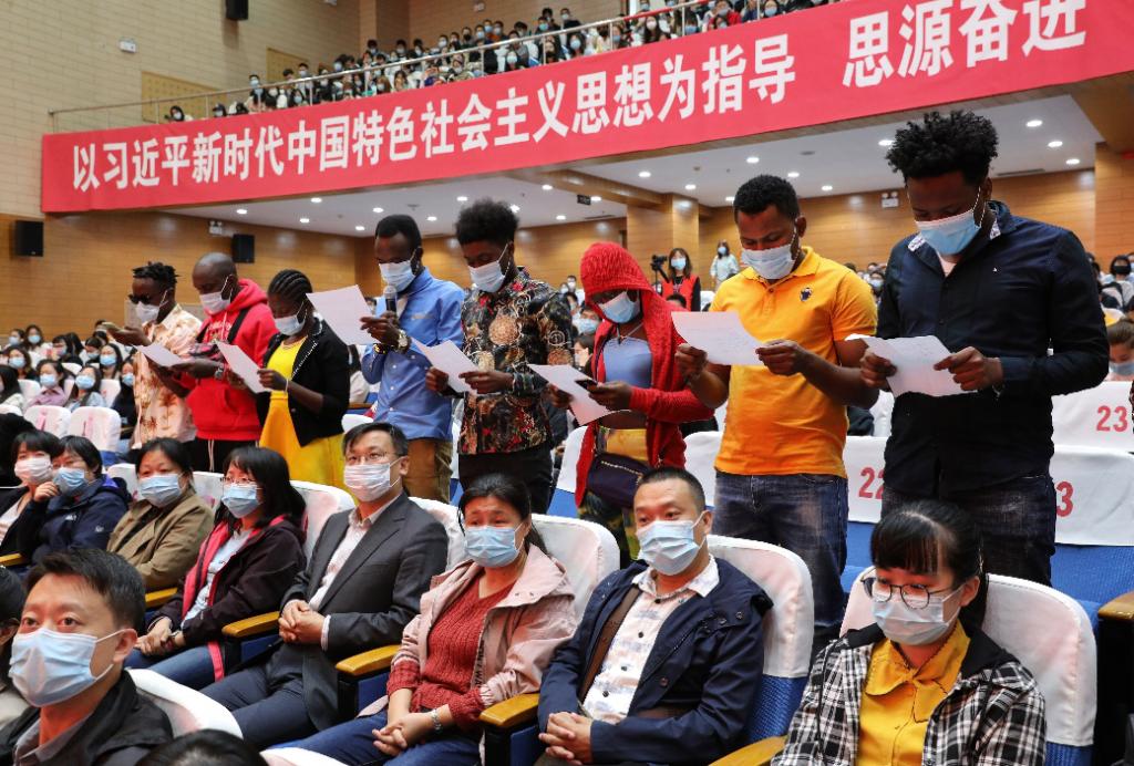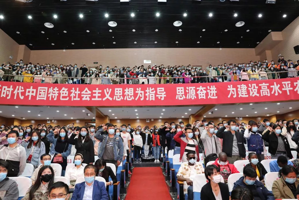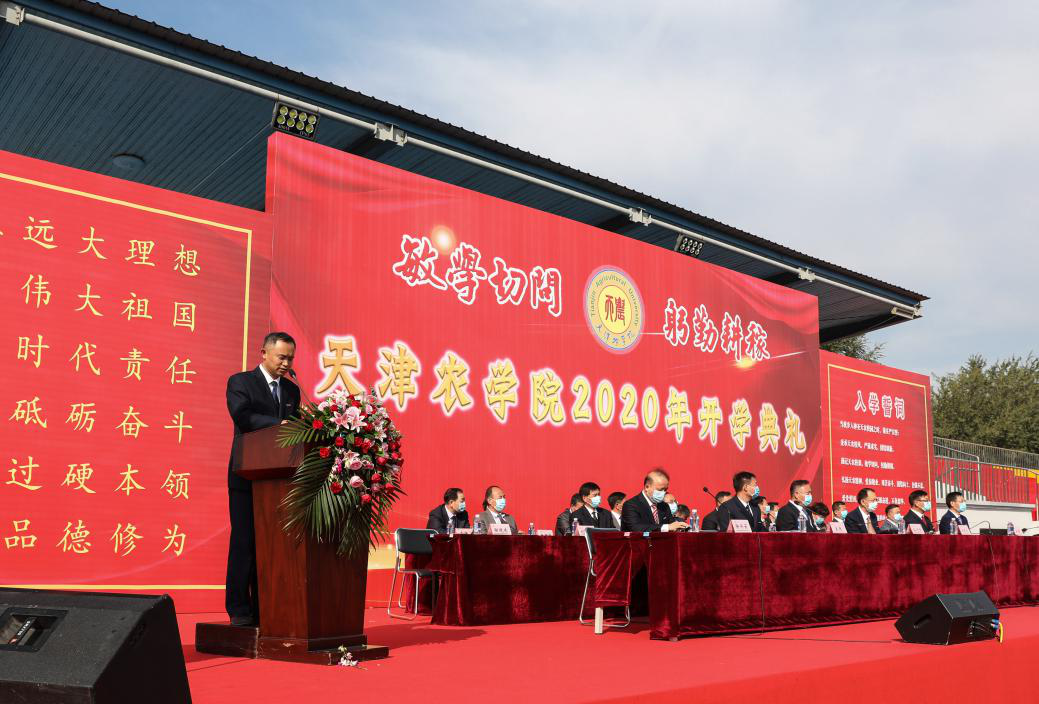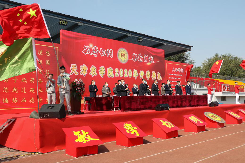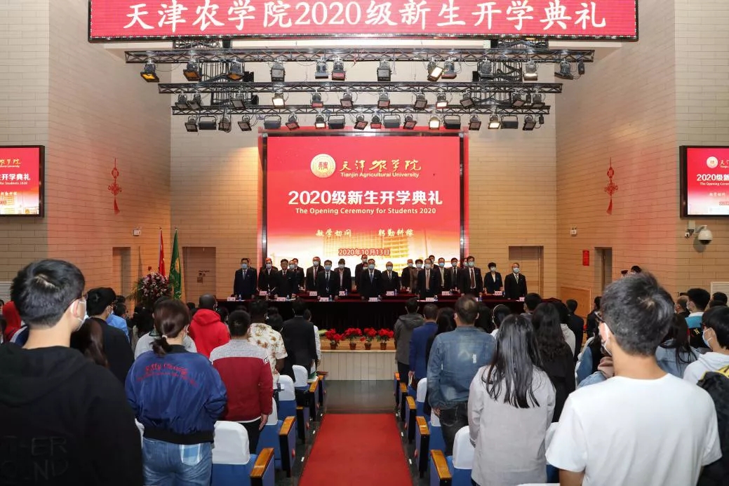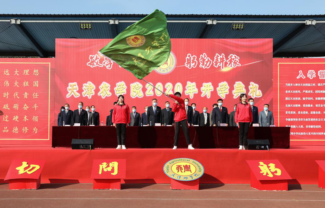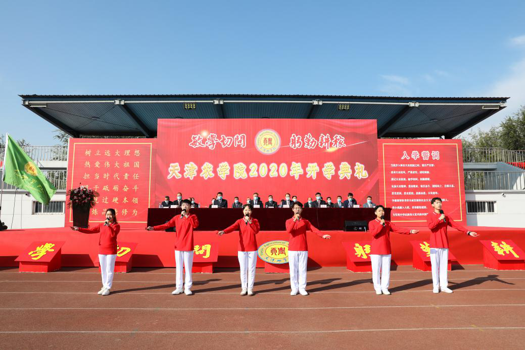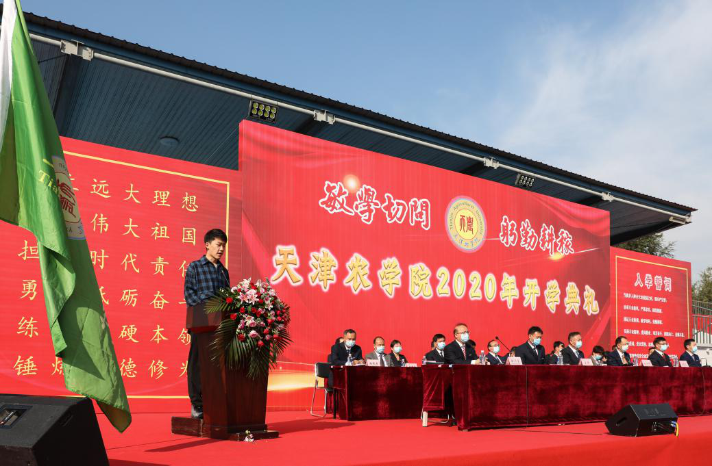 全体2020级新生进行入学宣誓,誓以谨记天农校训,秉承天农精神,爱党、爱国、爱农、爱校,决心为实现中华民族伟大复兴的中国梦而努力奋斗。