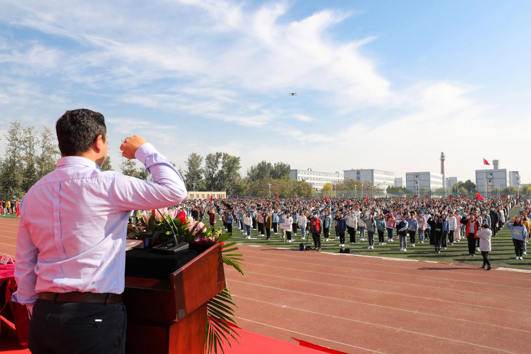 全体师生齐声高唱《歌唱祖国》 开学典礼现场(西校区)