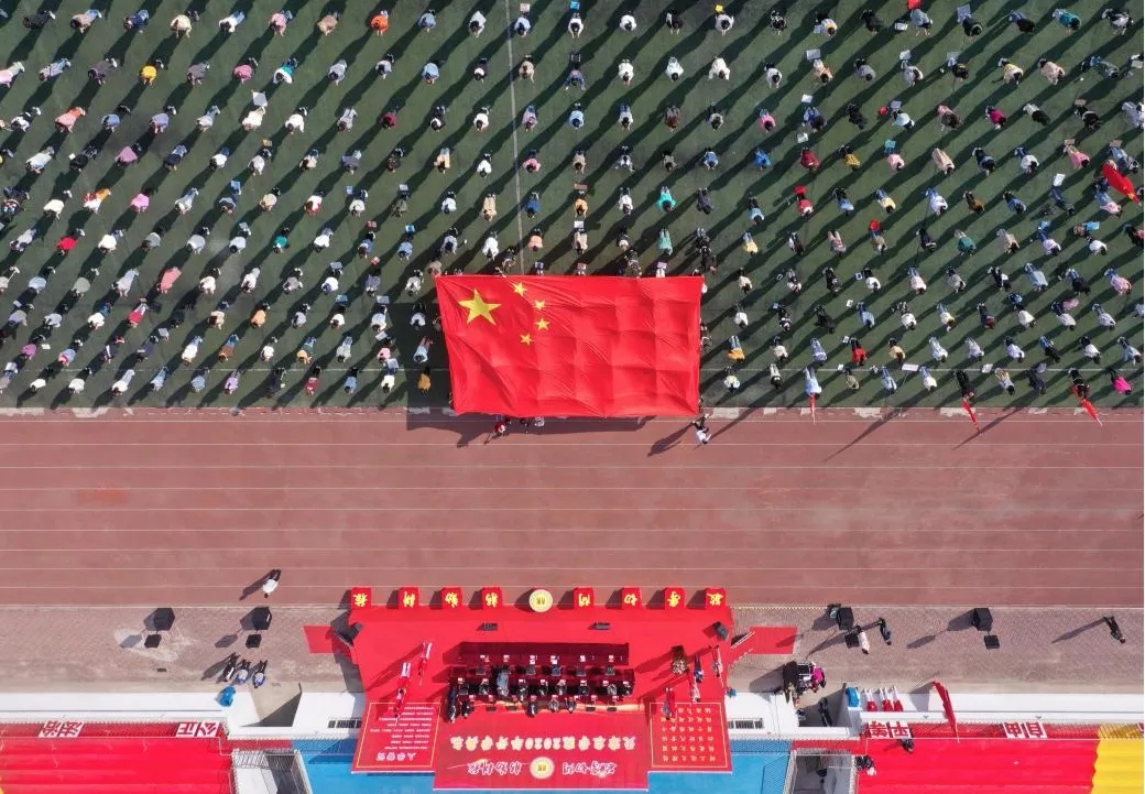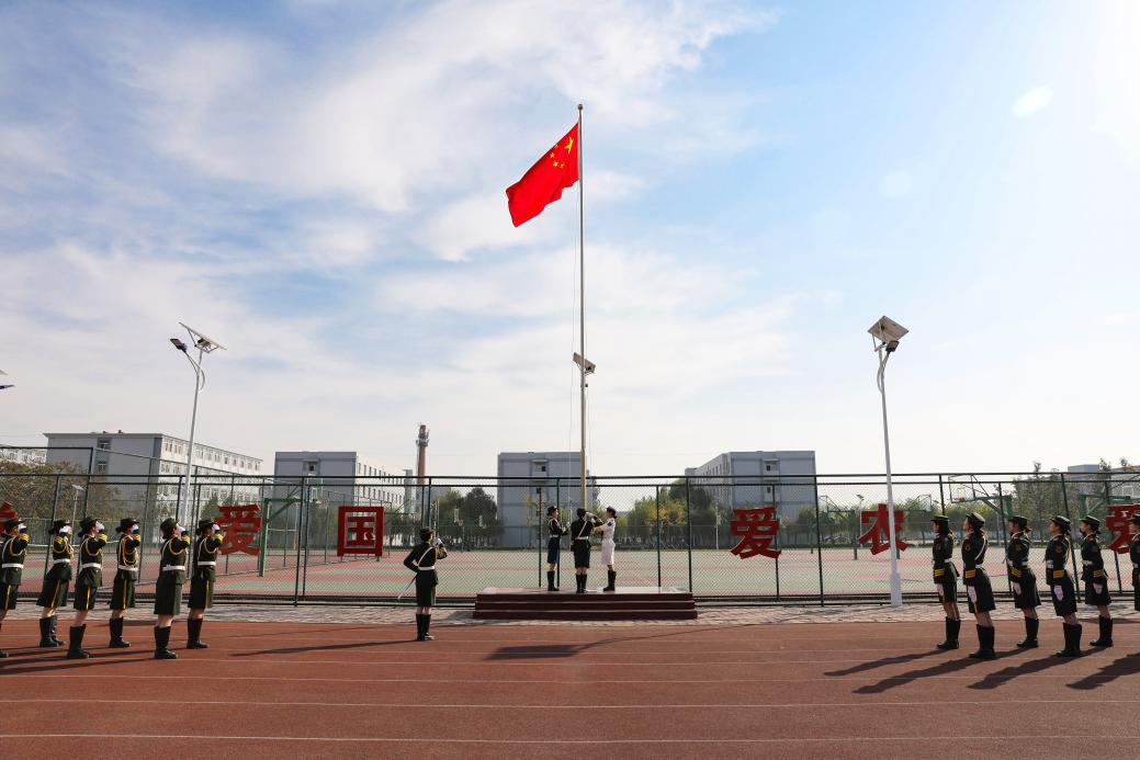 开学典礼在全场师生挥舞国旗、齐声高唱《歌唱祖国》中圆满落幕。