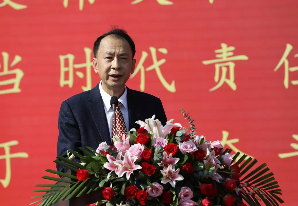 校党委书记孙守钧为新生代表佩戴校徽,并讲授开学第一课。他就伟大抗疫精神与师生分享了三点感悟,一要坚决拥护中国共产党的领导,做到感党恩、听党话、跟党走。要始终坚定拥护中国共产党的领导,始终牢牢坚持党的基本理论、基本路线、基本方略,始终坚持听党话、跟党走;要热爱伟大祖国和人民,积极维护祖国统一和民族团结,传承中华民族优秀传统文化,认真履行个人对祖国、对社会的义务和责任。二要积极践行社会主义核心价值观,让爱国主义成为青春底色。作为中国特色社会主义建设者和接班人,一定要心怀祖国,在学习和生活中积极践行社会主义核心价值观,将爱国情、强国志、报国行融入血脉,树牢中国特色社会主义的共同理想。三要勇担强农兴农使命,“思源”奋进,砥砺前行,厚植“爱党、爱国、爱农、爱校”情怀。树立懂农业、爱农村、爱农民的情怀,努力做知农爱农新型人才;努力践行校风校训、天农精神,为学校事业发展贡献力量。最后,他希望全体新生要大力弘扬伟大抗疫精神,持续做好疫情防控工作;在今后的学习生活中肩负起兴农报国的历史使命,敏学切问、躬勤耕稼,学有所思、学有所成,脚踏实地、一步一个脚印将论文写在中国大地上;不负青春、不负韶华、不负时代,做坚定跟党走、奋进新时代的天农学子。