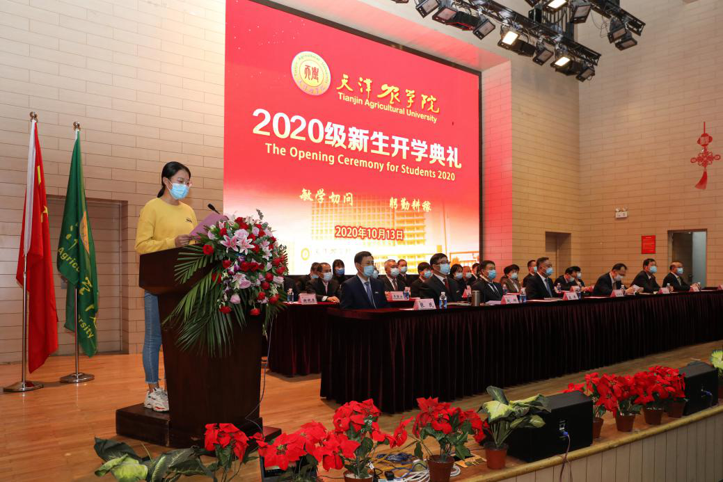 园艺园林学院2020级园艺学硕士研究生穆丁郁、动物科学与动物医学学院2020级学生周柏言代表新生发言,号召全体新生做自信天农人,肩负起时代赋予的强农兴农使命,立志做一名懂农业、爱农村、爱农民的新时代天农学子。