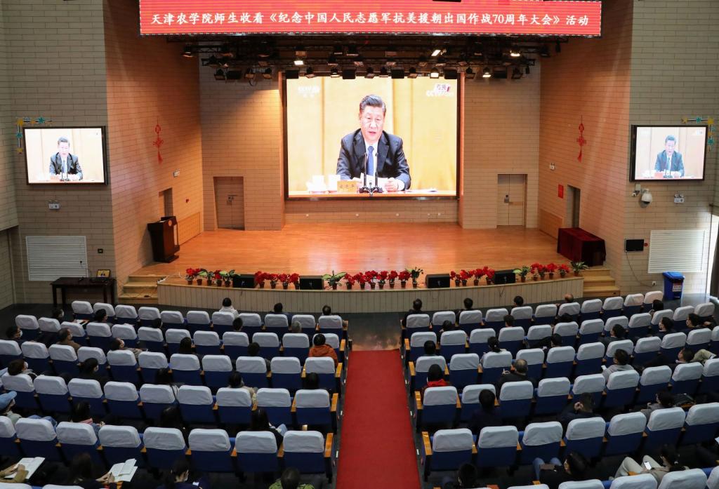 10月23日上午10时,纪念中国人民志愿军抗美援朝出国作战70周年大会在北京人民大会堂隆重举行,中共中央总书记、国家主席、中央军委主席习近平出席大会并发表重要讲话。今年会官网全体校领导、校院两级党委理论学习中心组成员及广大师生通过多种方式认真收听收看本次大会实况。观看结束后,广大党员干部及师生员工心情澎湃,倍受鼓舞。