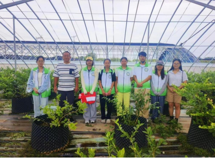当日下午,志愿服务队来到辛口镇岳家开村开心家庭农场蓝莓基地进行考察实践。蓝莓种植技术老师冯爱喜对同学们的到来表示热烈的欢迎,并讲解了富硒蓝莓的品种、特性、栽培要点、产销流通渠道等。