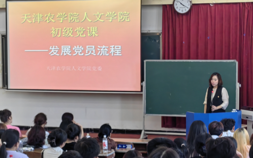 课上,董阳详细讲述了发展党员程序、入党条件、入党申请书撰写格式及注意事项,增强了新生对党的认识,为新生扣好“第一粒扣子”打下坚实基础。她激励新生要彰显新时代天农学子的担当之责,加强理论学习,涵养进取品格,厚植“三农”情怀,练就过硬本领,争取早日加入党组织。