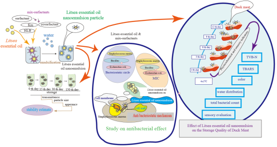 近日,食品科学与生物工程学院粮油精细加工与风味研究团队在《Journal of Molecular Liquids》(IF=5.3)期刊上发表学术文章“Study on the antibacterial activity ofLitseaessential oil nanoemulsion and its effect on the storage quality of duck meat”的文章,研究生程诚为第一作者,团队负责人何新益教授、骨干成员李航博士为通讯作者。