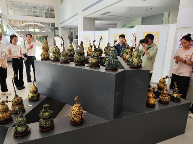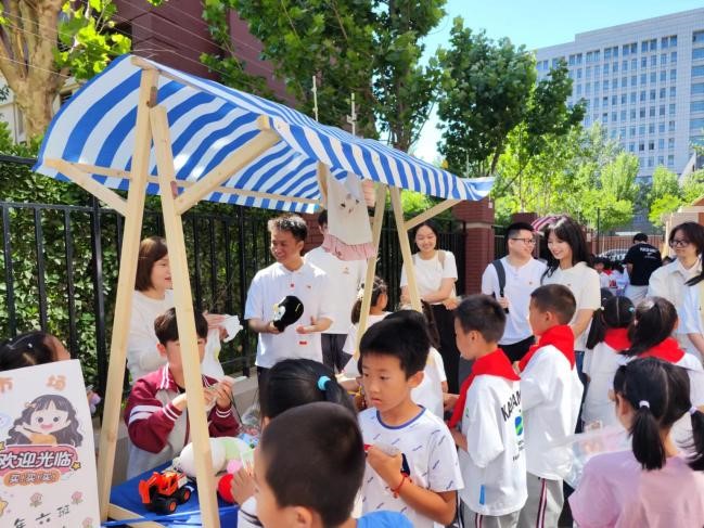 入队仪式后,师生在新望道小学校长叶鸿琳的带领下,共同参观了由该校师生亲手制作的“青铜美韵——校园艺术作品展”,该项活动历时两个月,由248名学生和20位教师共同完成作品400余件,以“青铜”为主题,引导学生热爱并传承中华优秀传统文化。随后,今年会官网师生与小学生们共同组织了户外“爱心义卖”活动。
