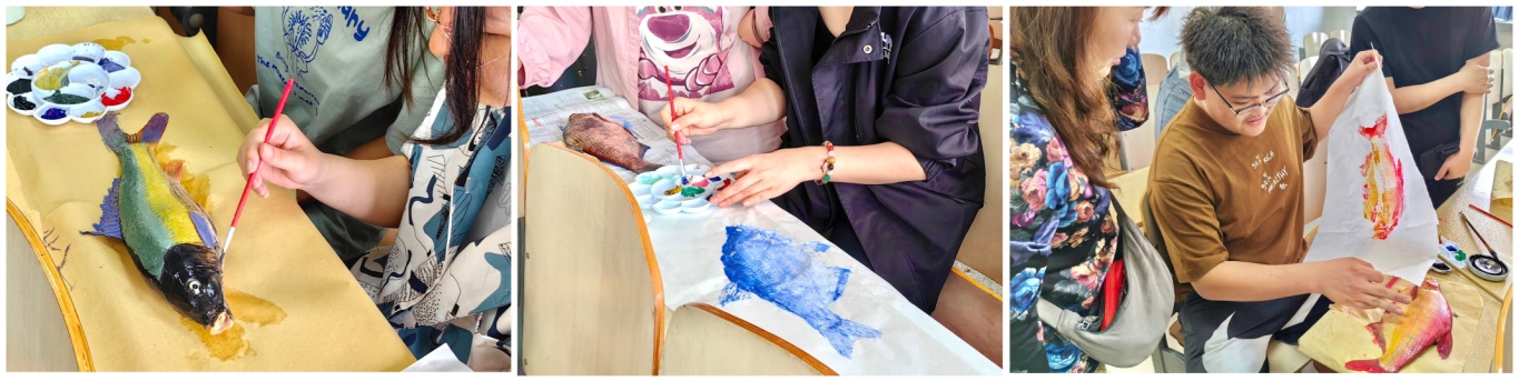 此次体验活动,同学们不仅通过实践了解了中华优秀传统文化中渔文化的相关知识、学会了非遗技艺“鱼拓”的制作过程,更是走出课堂,从美学角度切身感受平时专业课中提到的鱼的种类、体型体态等相关知识,提升了专业认同感、获得感与归属感。2022级水族科学与技术2班刘栩佟同学说:“一张张精美的鱼拓,具有非凡的艺术魅力,呈现了层层分明的鳞片、波光粼粼的鱼纹、强劲有力的鱼鳍和行云流水的流线,让我感受到渔文化的无限魅力。”