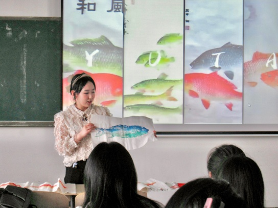 在介绍了“鱼拓”技艺的起源与内涵后,主讲人用现场展示及播放项目组制作的《非遗传承·宋式美学》教学视频的方式对“鱼拓”制作过程进行了讲解,同学们很快便沉浸其中开始创作属于自己的“鱼拓”作品。
