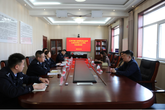 近日,人文学院受邀前往天津市梅江强制隔离戒毒所洽谈合作共建事宜。梅江强制隔离戒毒所党委书记、所长吴萍,党委副书记、政委宋广辉,党委委员、副所长赵志刚,办公室主任翟羽佳以及警察代表出席会议。人文学院党委书记王安香,党委副书记、副院长陈欣亿,组织员董阳参会。
