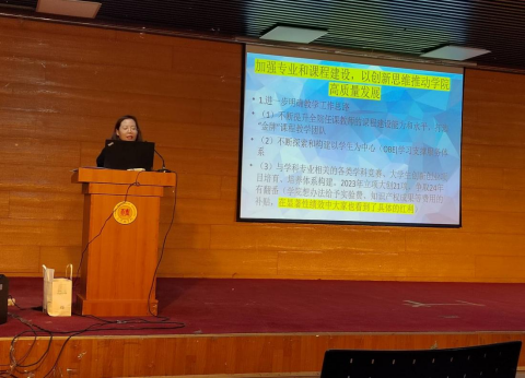 会上,张爱琳作了以《新目标新征程新作为推进一流专业建设、本科教育教学高质量发展》为题的大会主旨报告,全面回顾了学院2023年主要工作成绩及做法,肯定了专业建设、学科建设、课程建设、学生创新竞赛等方面的实绩,同时反馈了全年教学督导和评教情况,分析了当前教学工作存在的问题与不足,并对2024年工作目标和任务进行部署,对青年教师能力提升计划做工作部署。食品科学与工程系、食品质量与安全系及生物工程系3位系主任围绕一流专业、一流课程、课程思政示范课、公共课建设以及特色专业等方面作了工作汇报和交流。