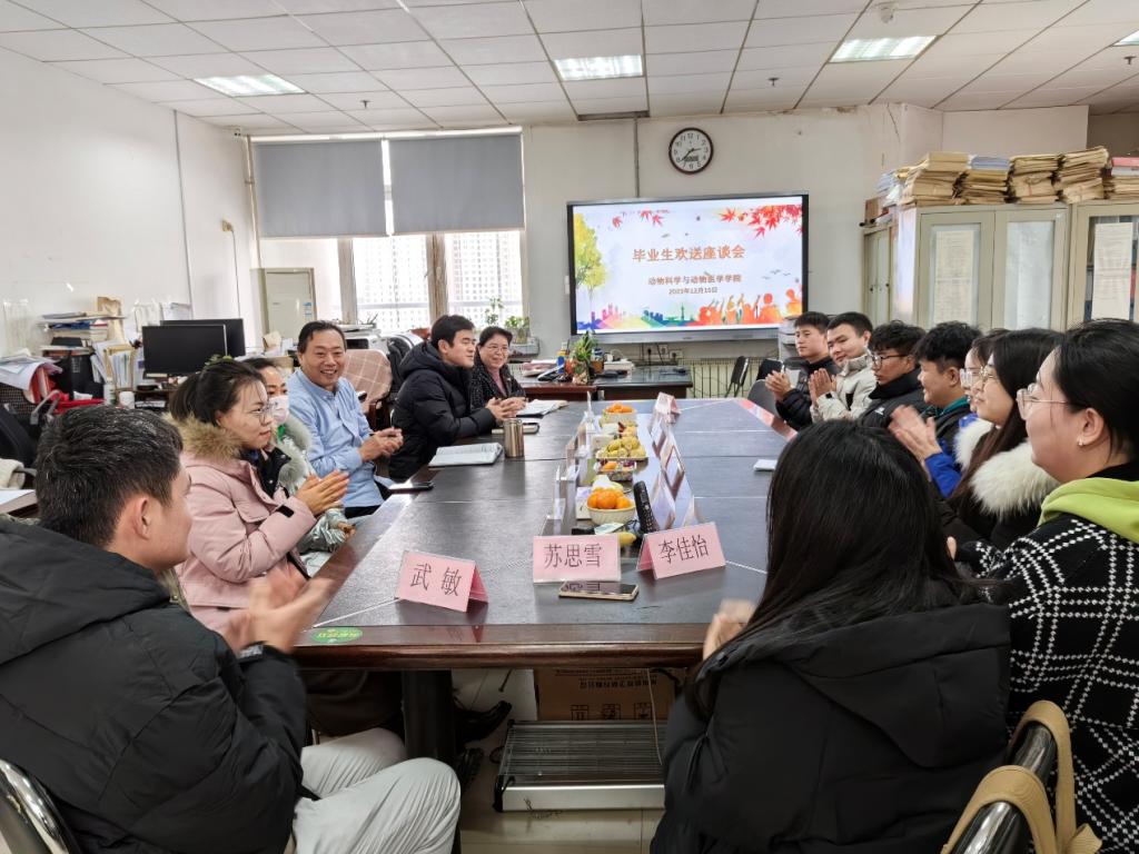 12月15日,动物科学与动物医学学院召开2023年12月份毕业研究生代表座谈会。学院党委书记于建强,院长丁向彬,党委副书记、纪委书记、副院长王学蓓,学工办主任戴媛和辅导员任祯慧参加了座谈。