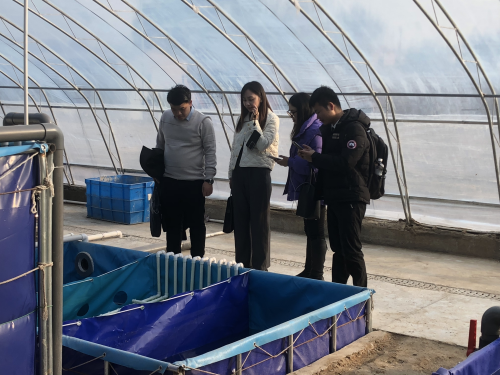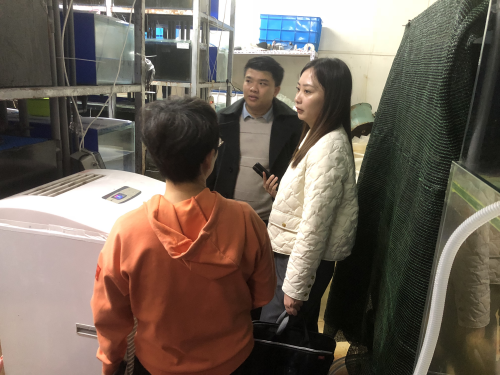随后,刘洁一行赴西校区参观了水产学院实习基地的养殖大棚、循环水车间等渔业设施,并与水产高职教研室刘颖和李建国两位老师开展交流。双方就水产养殖技术(高职)培养方案的确定进行了充分交流,并对专业和学科建设提出了合理化建议。