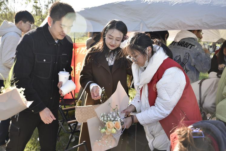 活动中,园艺园林学院学生与全市各党政机关、企事业单位的青年代表汇聚一堂,将花艺插花艺术展现给现场青年代表,介绍学院特色花卉艺术,弘扬中华传统文化,以美育人,启智润心。在学生志愿者的耐心讲解后,带领现场青年代表沉浸式感受插花艺术,制作精美花束。