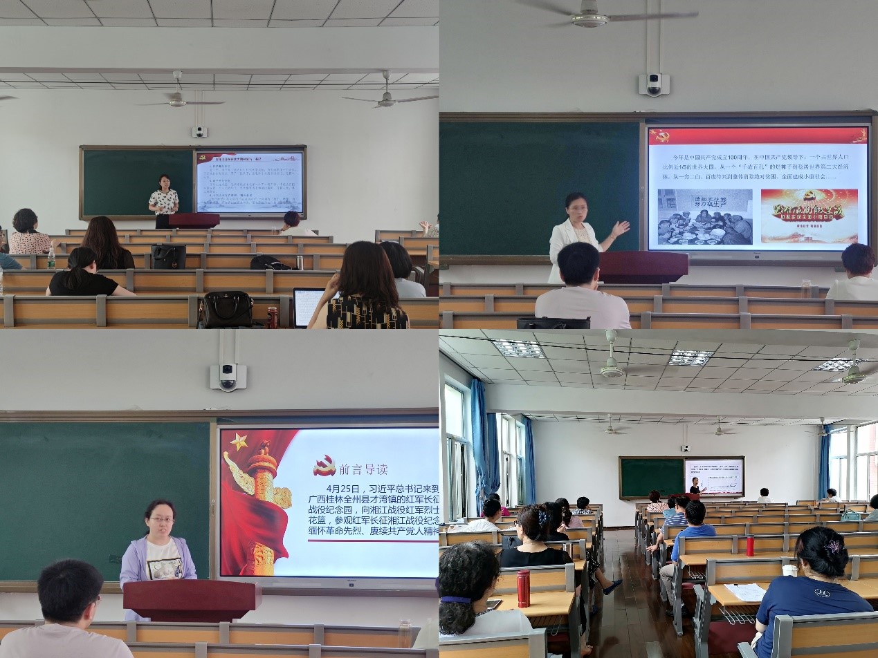 本次活动分两个阶段。第一阶段以教研室为单位进行集体研讨并择优推荐教师代表;第二阶段由学院组织教师代表进行教学展示。教师代表覆盖每个教研室。每位教师从各自所承担的课程出发,将“七一”重要讲话精神、党史故事、党史人物融入思政课,展示了各门课程所选择的视角和方法。通过五个教研室之间的交流互鉴,既取长补短,也为避免各门课程之间的内容的简单重复提供了思路,是一次课程之间实现一体化的教学展示和集体备课活动。
