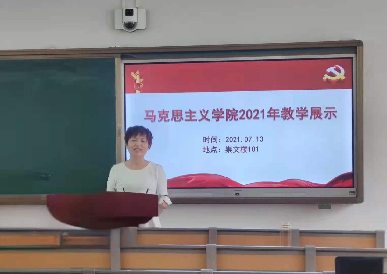 近日,马克思主义学院举办“‘七一’重要讲话精神融入思政课”教学研讨与展示活动。活动由马克思主义学院副院长李月玲教授主持。