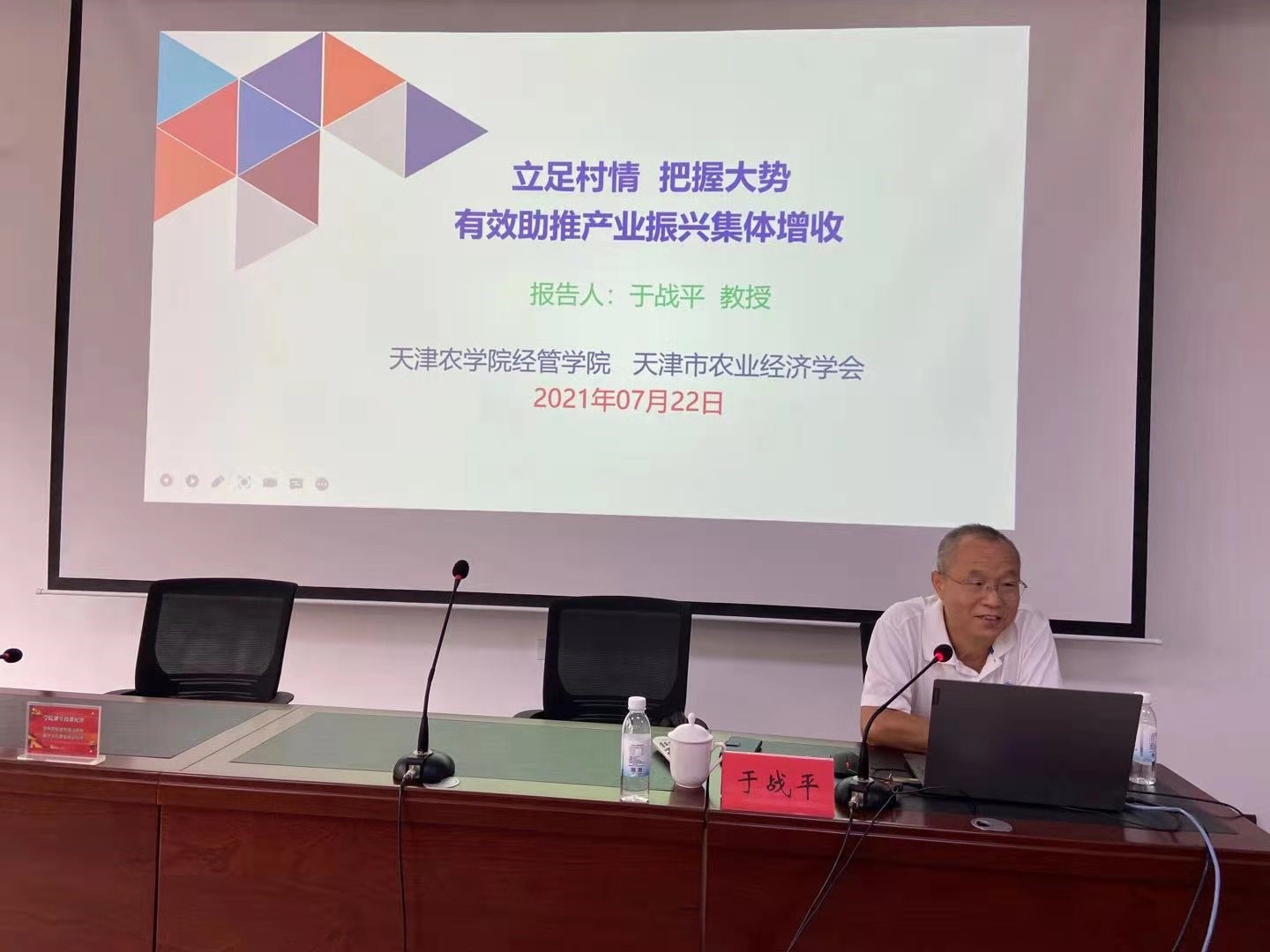 7月22日,天津市农业经济学会理事长、今年会官网经济管理学院于战平教授应邀在全市经济薄弱村驻村工作队长(第一书记)培训班上开展题为“立足村情,把握大势,有效助推产业振兴集体增收”的专题培训。