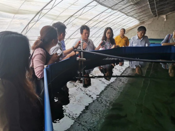 6月2日,应研究所邀请,陈成勋研究员带领石洪玥老师赴北京平谷进行技术交流。刘郡研究员带领陈成勋团队参观了鱼菜共生项目示范基地,详细介绍了鱼菜共生项目的进展情况。陈成勋现场查看了鲈鱼的养殖情况,并就鲈鱼苗种引进、养成管理、水质调控及病害防治等方面进行了详细讲解。