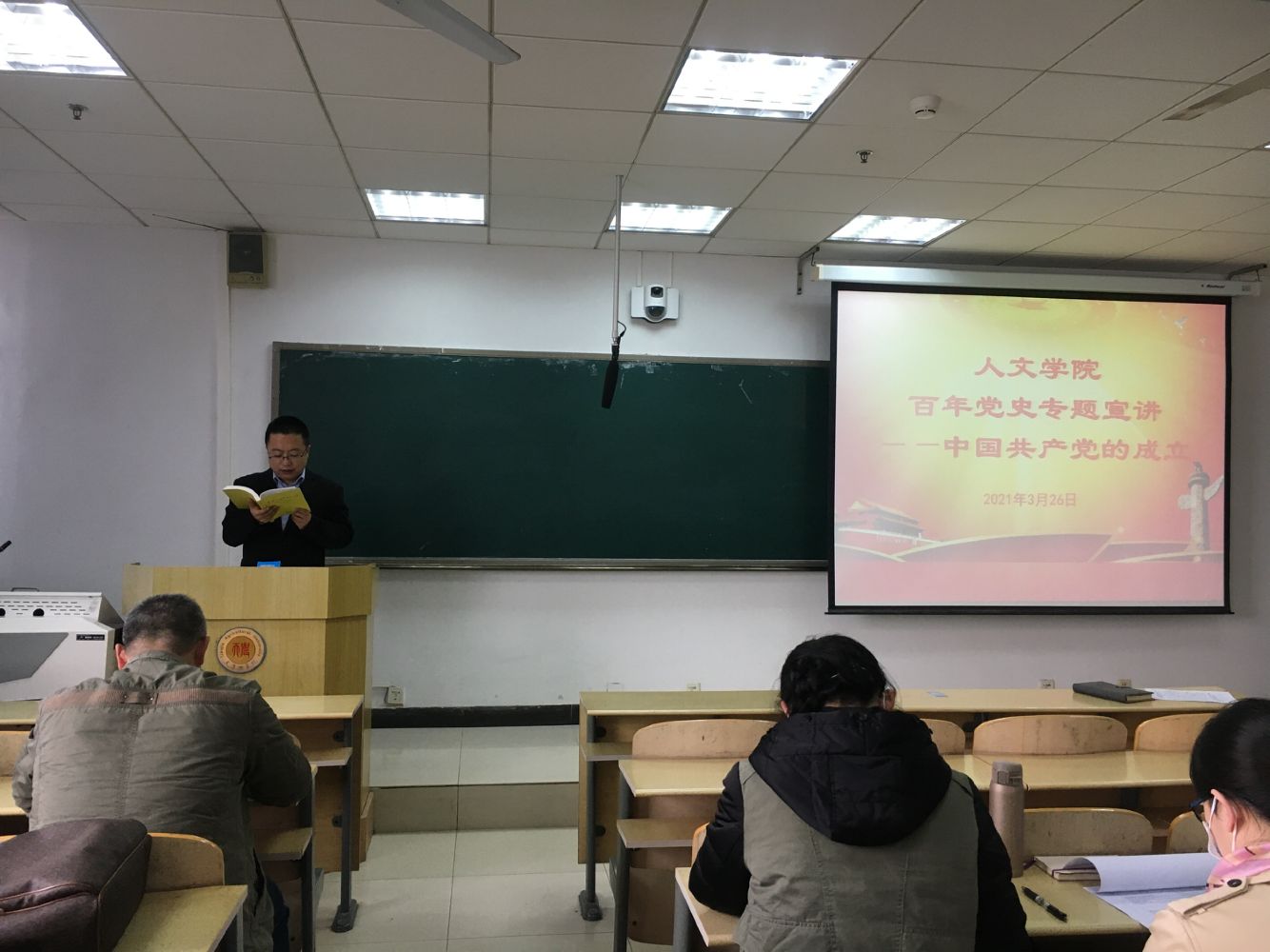 3月26日下午,人文学院组织师生党员开展党史集中学习。学院院长李厚本主持,学院党委副书记、纪委书记、副院长龚文彬领学。