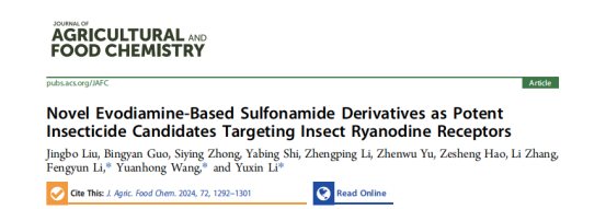 该获奖项目依托于国家自然科学基金项目,以兔RyR1蛋白结构为模板同源模建昆虫RyR三维蛋白结构,借助计算机辅助药物设计开展吴茱萸碱的结构优化,快速高效构建吴茱萸碱类衍生物多样性分子库;评价吴茱萸碱类衍生物的杀虫活性,发现高活性化合物,总结构效关系规律;探究高活性化合物非靶标生物安全性;探究并验证杀虫作用机制。该研究为开发绿色高效的生态型植物源杀虫剂奠定基础,对天然源农药创制和农药减量增效施用具有重要意义。相关研究已发表在中科院一区期刊Journal of Agricultural and Food Chemistry。