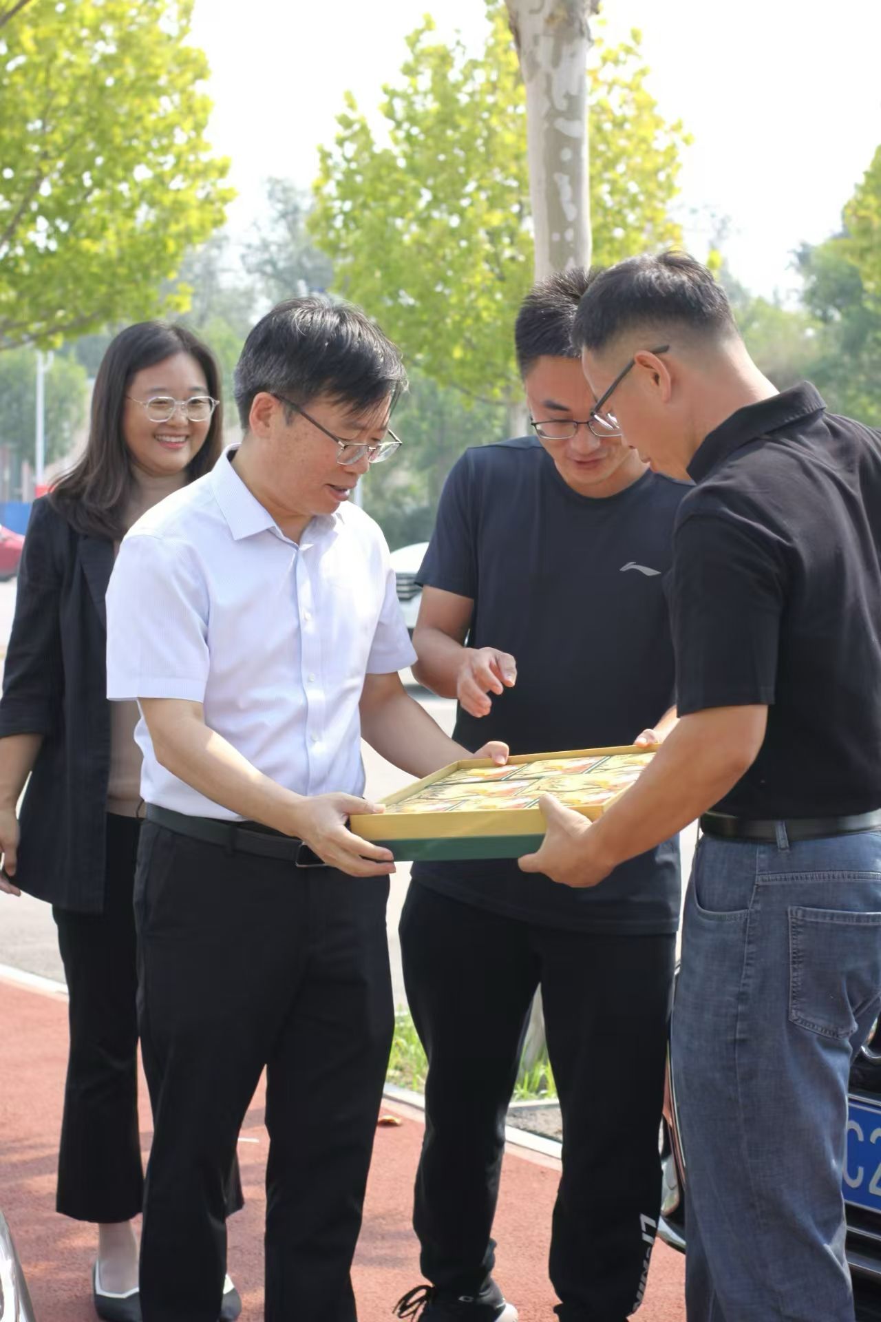 李鑫来到西校区,慰问学工、保卫等一线值守工作人员。并为同志们送上香甜的月饼,让同志们感受到天农的温情。