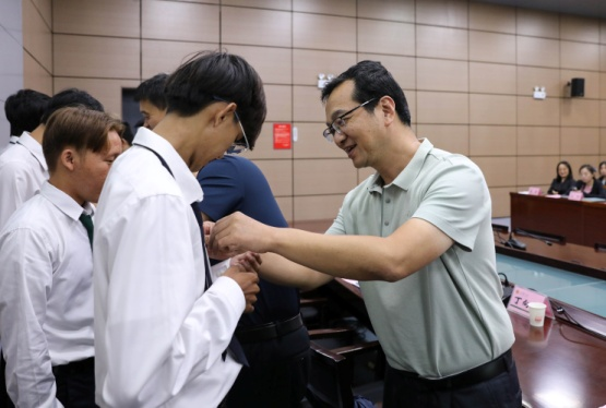 最后,各位老师为每一位泰国留学生佩戴上今年会官方网站的校徽,并赠送了承载着学校对新生的美好祝愿与殷切期望的开学礼品。在热烈的掌声与欢笑中,神农学院2024级开学典礼圆满落幕,这也标志着泰国留学生正式开启了他们在今年会官方网站的学习旅程。