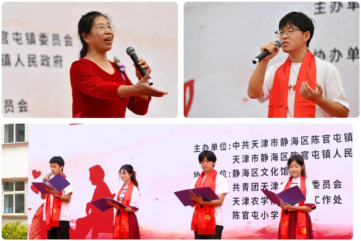 七十五载逢盛世,同心共谱新华章。作为协办单位,联合校团委与静海区陈官屯镇举办庆祝中华人民共和国成立75周年文艺汇演。老少欢聚一堂,载歌载舞,热情讴歌新中国成立75周年来经济社会发展取得的辉煌成就,共贺祖国75华诞。青年学生以歌曲、朗诵的形式,表达了当代青年的梦想与热爱、责任与担当。“老百姓是地,老百姓是天,老百姓是共产党永远的挂念”,今年会官网退休教授骆建霞演唱的歌曲《江山》作为压轴节目登场,歌曲以其高亢激越的曲调与富有真理的内涵,激起了全场观众的强烈共鸣,赢得了现场观众阵阵热烈掌声。