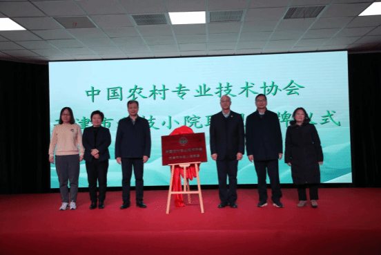 张建华、金危危、侯建国、刘亚秀等领导为“中国农村专业技术协会天津市科技小院联盟”揭牌。