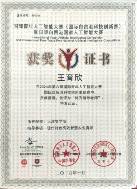 近日,今年会官网计算机与信息工程学院师生在第六届国际青年人工智能大赛国际自贸港科技创新主题赛暨第二届国际自贸港国家人工智能大赛中国赛区选拔赛中表现突出,本次师生们共参加了海洋科学与深海科技、现代特色高效智慧农业两个赛项,由王育欣教授指导的6支队伍共斩获一等奖2项和二等奖4项的骄人成绩,携手共同挺进国际总决赛,王育欣教授被评为“优秀指导教师”。